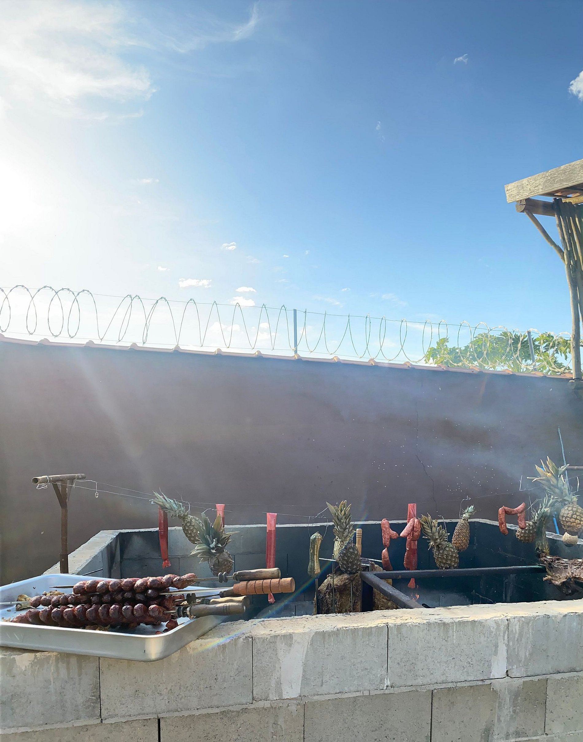 Área para preparo de costela no chão