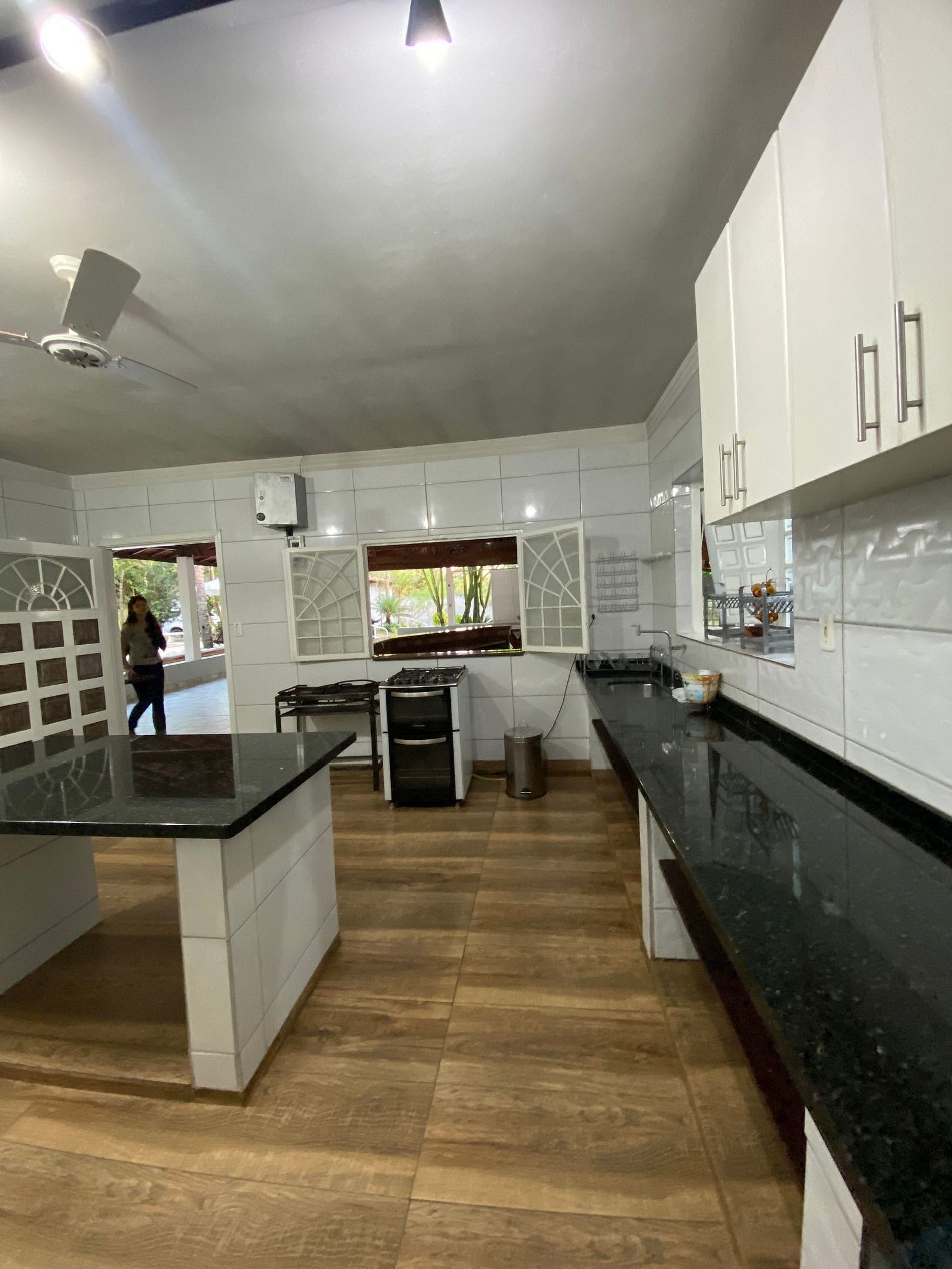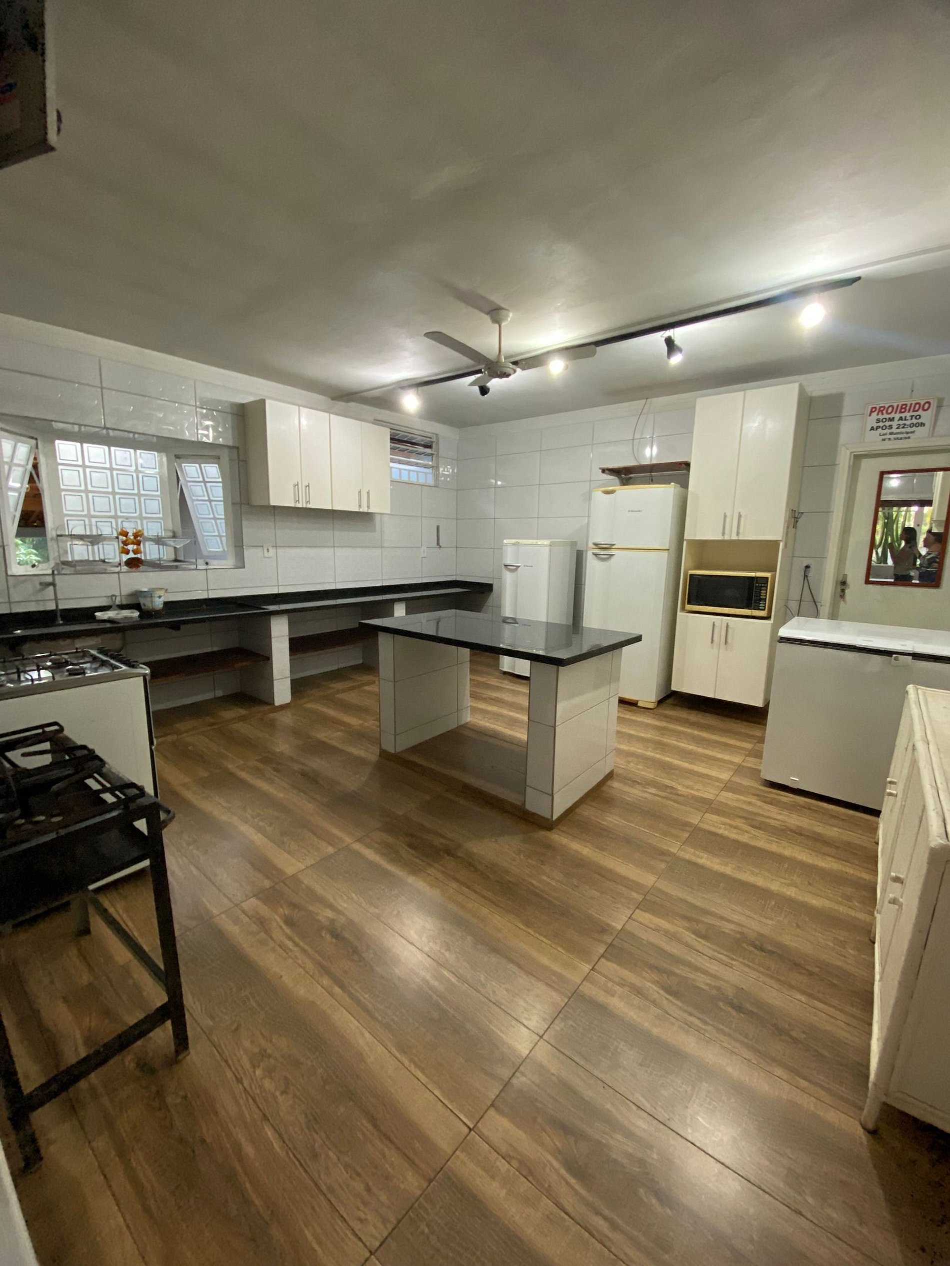 Cozinha completa com 2 geladeiras, freezer e fogões