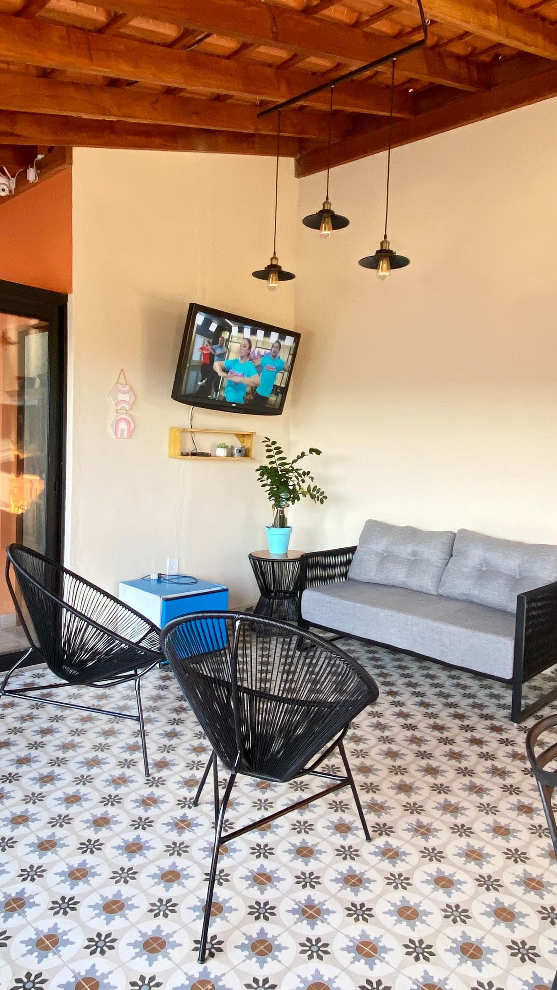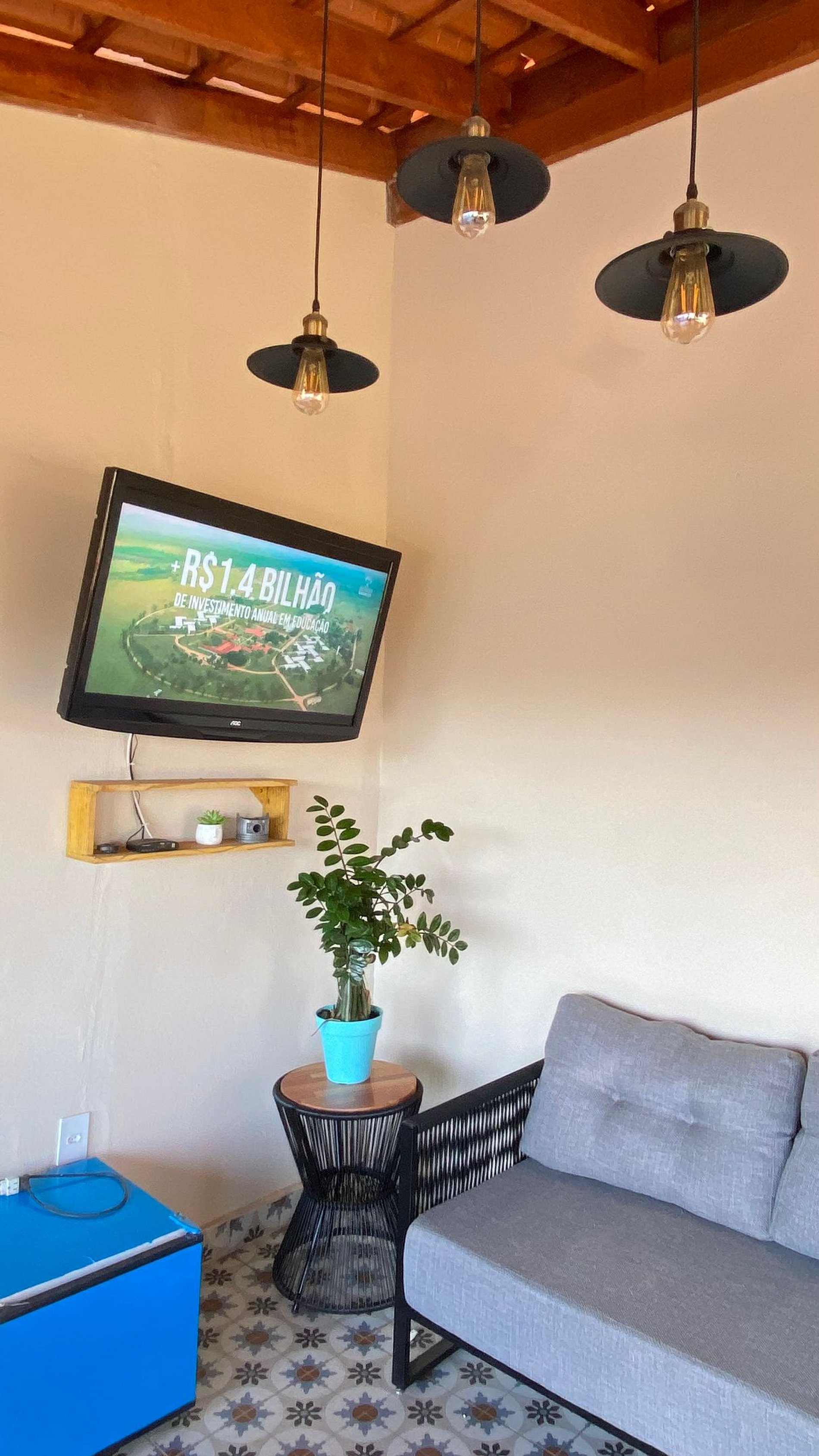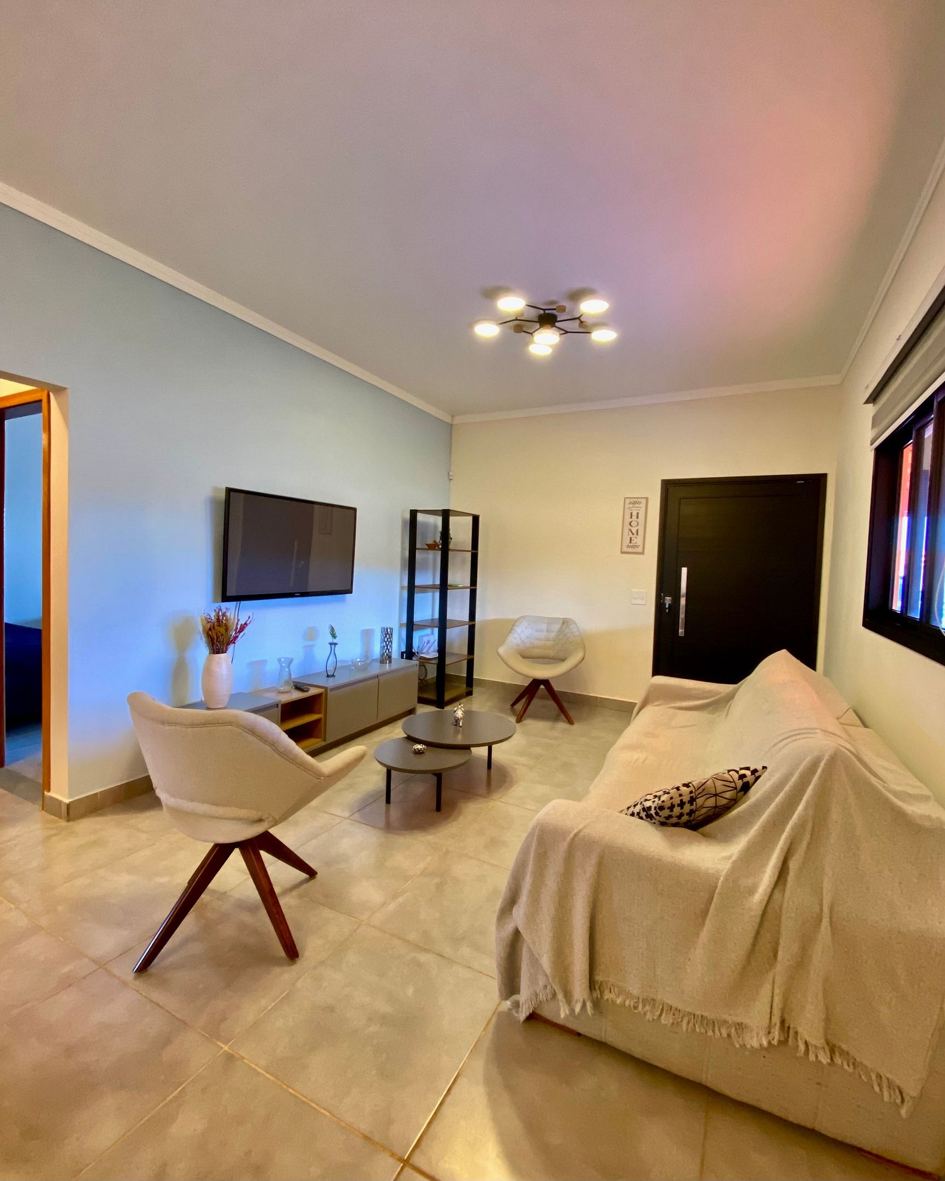 Sala de estar aconchegante com TV e decoração moderna