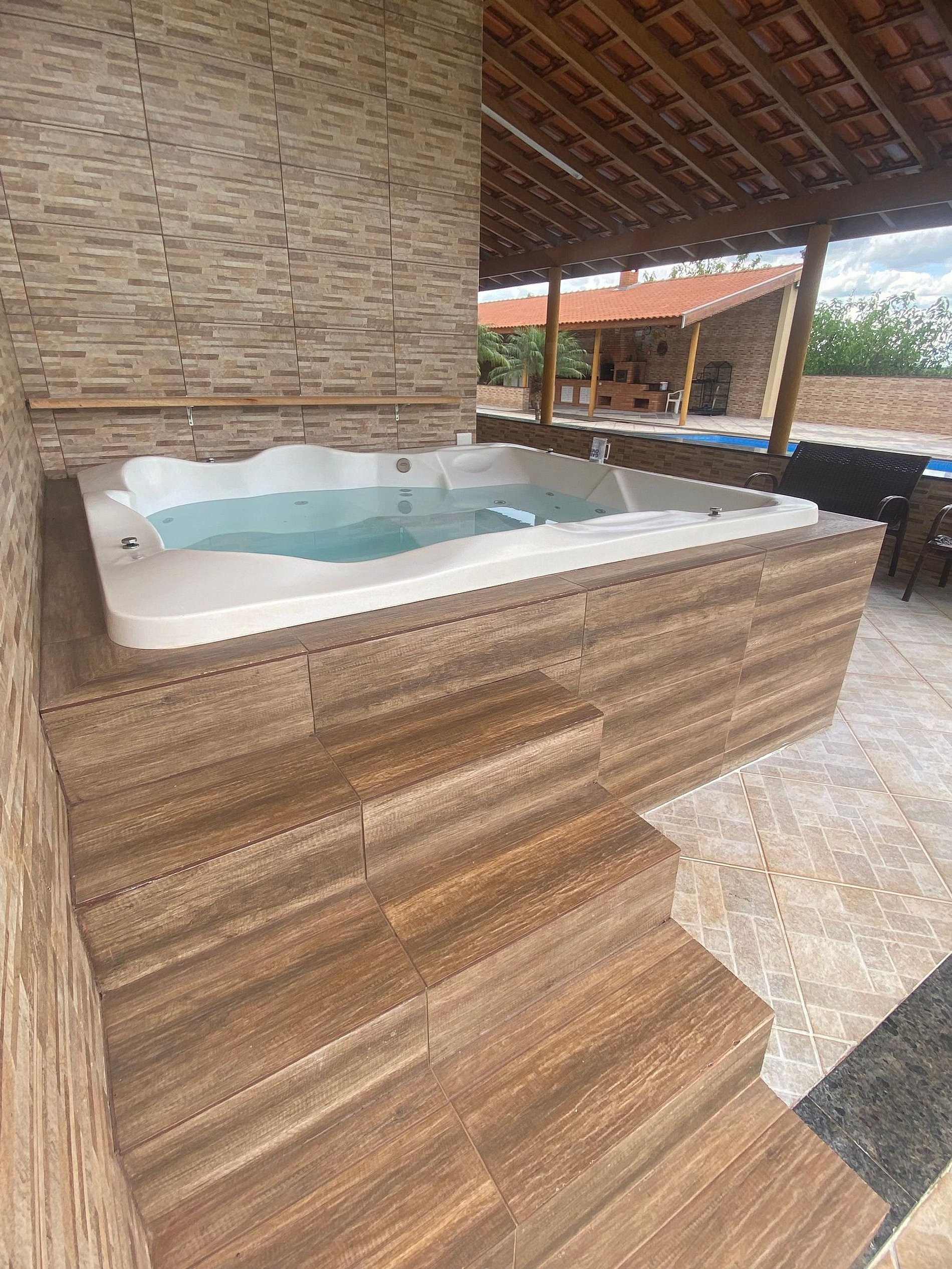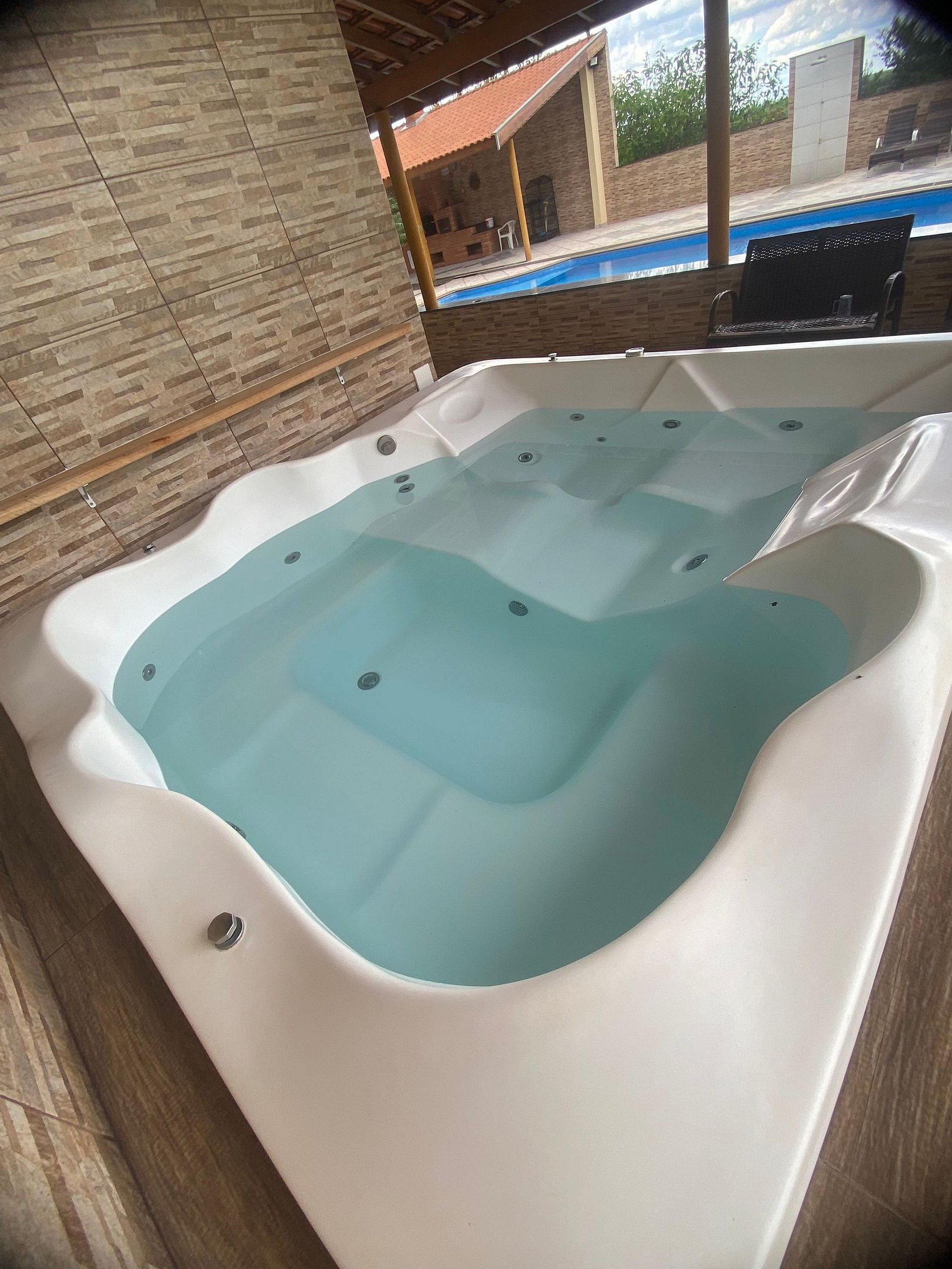 Para maior comodidade, há ainda dois banheiros externos de apoio. A área de lazer é completa e pensada para relaxar: Piscina ampla de 12x8 metros Jacuzzi aquecida para até 8 pessoas Rancho com churrasqueira, fogão a lenha e freezer Sala de TV climatizada com ar-condicionado e smart TV Wi-Fi disponível em toda a propriedade